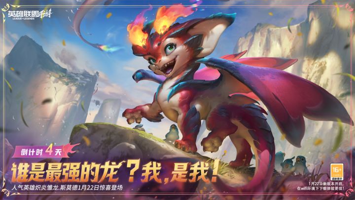 在诺克萨斯边境的嶙峋峭壁间,有一条幼龙正在龙母的密切注视下,学习领悟着作为卡玛维亚帝巨龙血脉继承者的意义。全新英雄“炽炎雏龙 斯莫德”闯入峡谷!虽然他样子萌