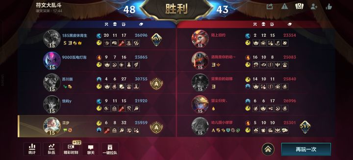 符文大乱斗elo太明显了吧我连输四五把了,然后过了几天再玩,每把都是直接四龙魂,爽了几把之后又开始变成对面虐我方了。要不是没事的时候玩一把符文,早卸载了,没意思上分全靠机制