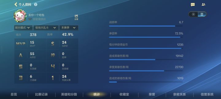 其实吧,我觉得,还有进步空间毕竟胜率是100,你有40多,很棒了
