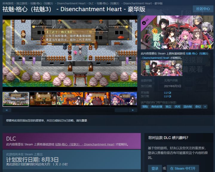 【新游】祛魅·格心(祛魅3)Steam版24小时后发售