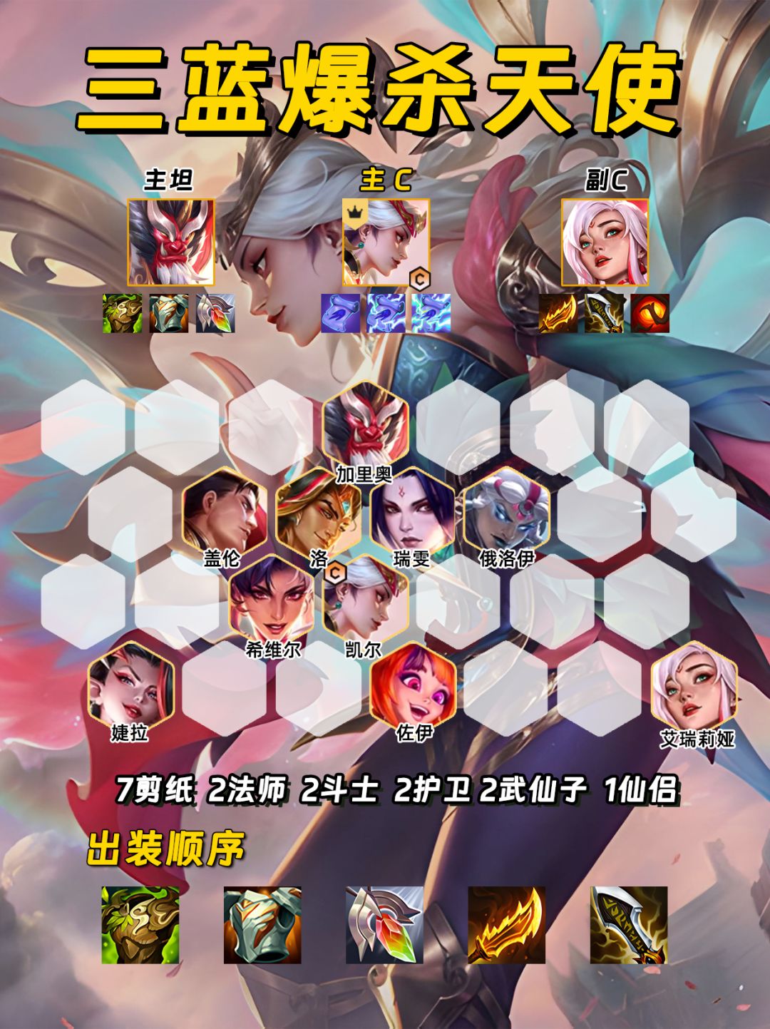 蓝天使真的太好玩了🤪 只要一巴掌对面后排就没了 对手看到直呼离谱😵💫 ✨过渡思路✨ 前期胡剪纸或有剪纸转可直接冲🏃♀ 搭配前排斗士、护卫棋子过渡🚣♂ 天使技能一定要选择蓝色的‼ 装备方面优先做前排肉装🛡 刀妹装备给希维尔先过渡 多余的法强装给佐伊🧝♀ 让自己尽可能的高战力连胜上八💹 正常节奏2-1升4,2-5升5,3-2升6,3-5升7,4-2升8 如果八级各棋子都二星后还是没有刀妹🔪 就