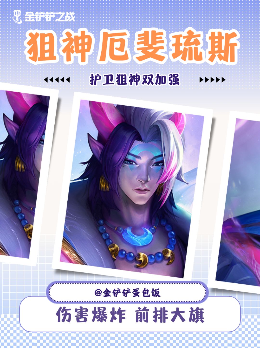 🥰halo这里是蛋包饭! 狙神迎来加强,今天给大家分享一套狙神阵容,这个版本上分真的很强! . 1️⃣主c:厄斐琉斯 2️⃣副c:艾希 3️⃣主t:阿木木 . 🌟运营过渡思路 1、前期用塞纳体系或护卫狙神过渡 2、4-1升7d牌开4狙神2护卫,有狙必转开6狙神,7级d三星月男和阿木木;无转4-5升8,开4护卫,有狙神转7追三星开6狙神2护卫 #脱坑入坑上戏仔 #游戏攻略 #金铲铲上分阵容 #金铲铲