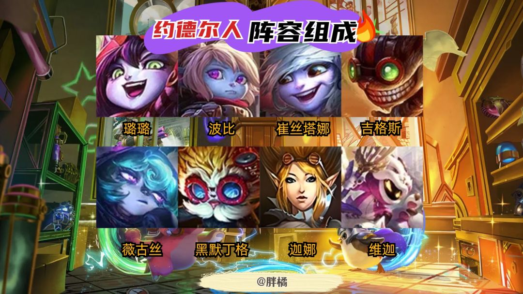 金铲铲之战双城传说全新升级上线!约德尔人阵容该怎么玩?召唤【三星维迦】是每一个铲铲人的梦想!约德尔人阵容算是一个娱乐阵容,不确定性非常强!胖橘给铲友们,分享当前版本约德尔人维迦运营攻略! 阵容组成: 波比、吉格斯、璐璐、崔丝塔娜、薇古丝、黑默丁格、迦娜、维迦 地区选择推荐: 【羁绊造星事务所】:3-2中必然出现羁绊专属强化(根据已有羁绊,若玩家没有激活任何羁绊则纯随机) 【幻梦池】: 在每个阶段开
