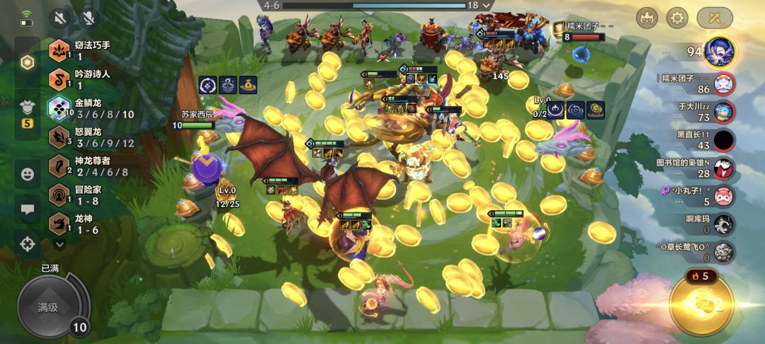 开局看见龙之秘宝就开始空城攒利息,50利息后凑执事过度,250层就收,钱越多越好,然后八级开始d,只要四费,五费不要,最后4/7前留上个三四十块钱,我这把都没d,直接就出了,全场二星四费,一选直接三星蓝胖子,装备提前也准备好了,直接,结束游戏
