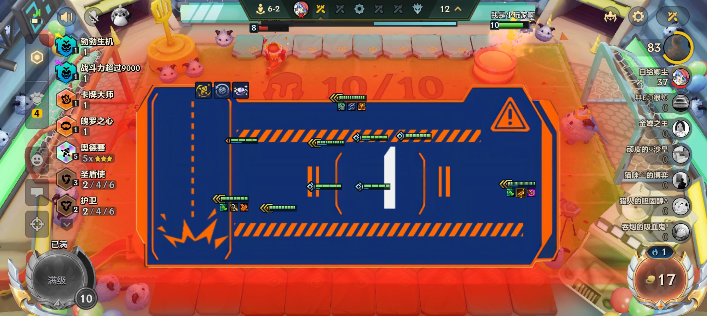 前些天笔者在排位时遇到了一个这样的情况,2-1时我已经有了四张卡尔玛,三张宝石和两张女坦,装备为两个水滴一个贝壳,而此时我决定玩一把护卫卡尔玛此时我并没有发现特别明显的同行 而到了2-4时,我意外的发现,外面有了两家同行,相信很多小伙伴都有遇到这个情况,赌狗遇多同行难锁血然后吃不到分,笔者这边给大家一个思路,那就是提前抽。 前期一定要保证自己的连败,同行一费赌狗在大搜的时候也就是打完石头哥,那么我