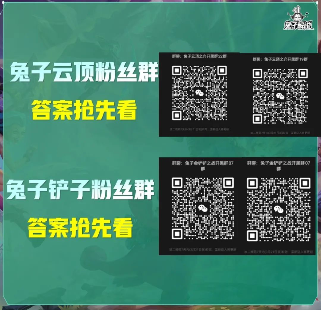 云顶阵容去兔顶之弈公众号 兔子解说由兔子亲笔写一些创意、精品的内容 学阵容前先学运营,基础运营不熟或者新手,先看这一篇: 祝大家除夕快乐! 众所周知铲子是这个游戏最特殊的装备 可以通过野怪的金色法球获得 也可以通过选秀或城邦获得 那么当我们有铲子时候 应该优先合成哪些转职呢 哪些转职吃分和吃鸡率更高呢 接下来让我们一起来到今天的铲子小课堂 铲子小课堂 羁绊介绍: 【五杀摇滚】弈子们获得15%伤害减