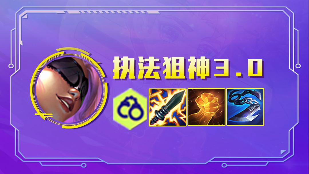 前言:大家好,我是小嗨。新版本更新加入了【龙蛋】机制,能够开出大家想要的转职,那么当前版本必定是高羁绊为主,而新版本加入了5执法羁绊,那么今天就围绕这个羁绊搭建我们新的执法狙神3.0。 阵容组成:凯特琳、瑟庄妮、厄运小姐、奥莉安娜、烬、蔚、泽丽、杰斯阵容羁绊:3/5执法官4/6狙神2格斗家2精密发条阵容变阵:(1)有狙神转,直接给杰斯补充艾希开6狙神(2)有执法转,直接给泽丽开5执法(3)有精密转