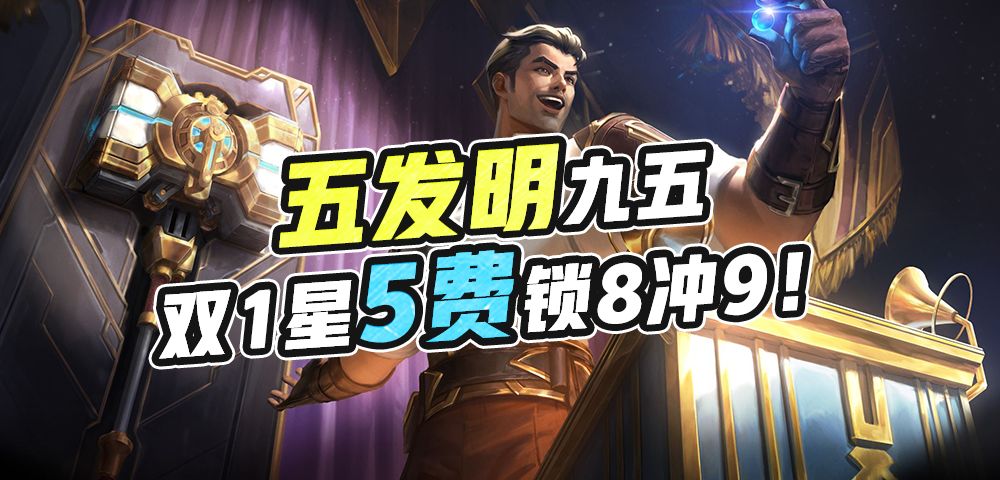 云顶S6丨双城之战,五发明九五,双1星5费锁8冲9!