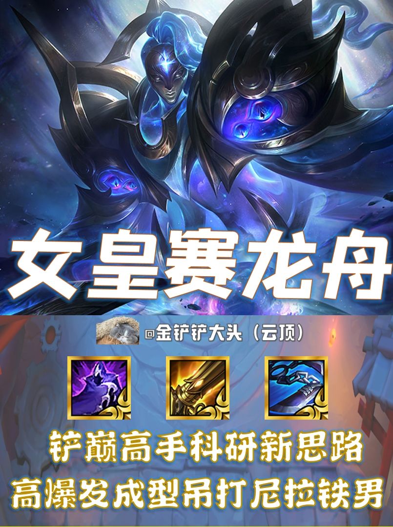 女皇=卑尔维斯 赛=塞恩 龙=龙王英雄传说之力 舟=船长 当前版本情况大家都知道:尼菈铁男霸榜,相互内卷情况下出了很胡的都不会有好出路,所以转变思路一定要有,且看~ 阵容组成:蔚、塞恩、瑟庄妮、雷克顿、雷克塞、科加斯、卑尔维斯、普朗克、黑默丁格 羁绊组成:6格斗 3虚空 装备方面: 卑尔维斯:疾射火炮、巨人杀手、夜之锋刃 普朗克:珠光护手、巨人杀手、朔极之矛 瑟庄妮:日炎铠甲、圣盾使的誓约、荆刺背