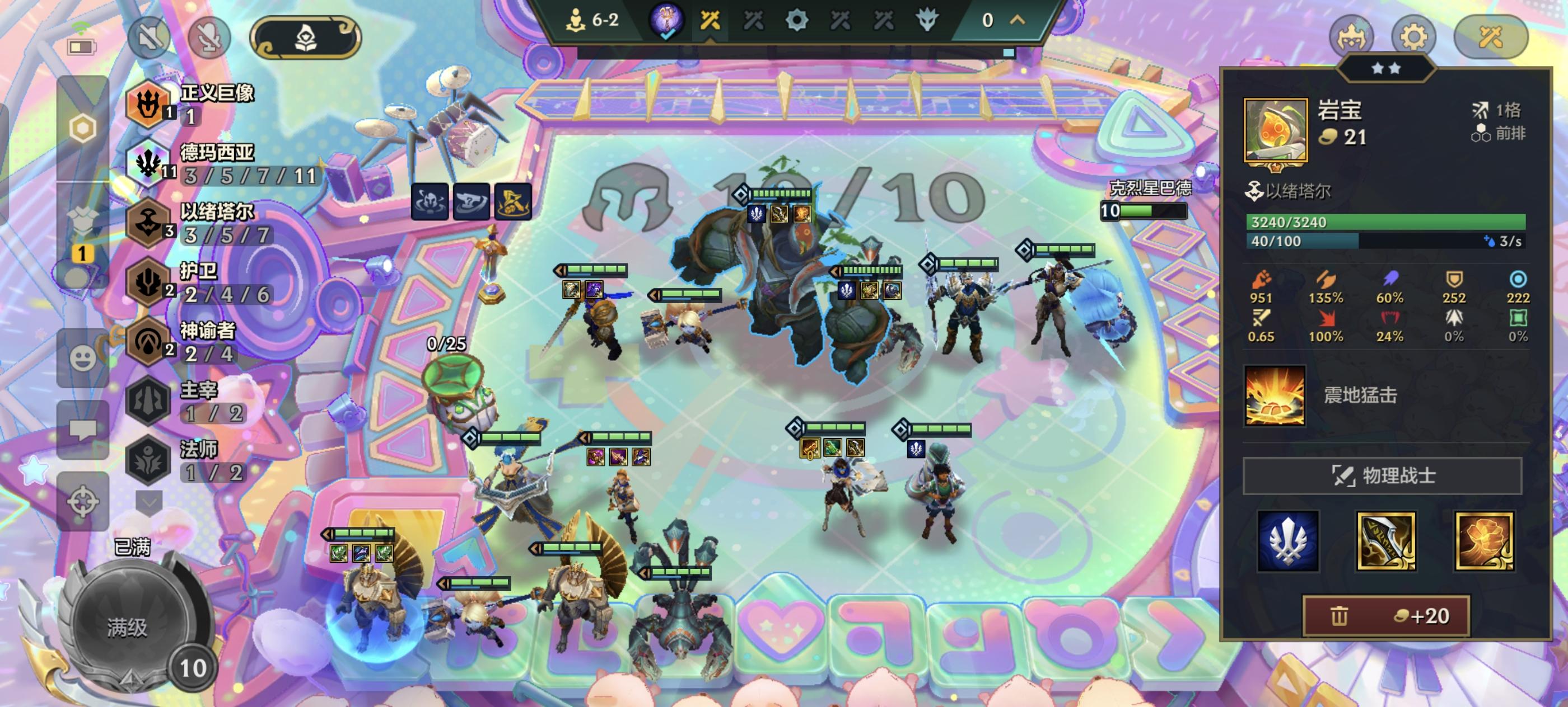 本来想玩比尔的,没想到敲文章和锅爆出来德玛转,加上发的铲铲,以绪塔尔又准备收菜,德玛西亚岩宝直接就位,锁血上十,魔像踩一脚岩宝再踩一脚,对面全部升天