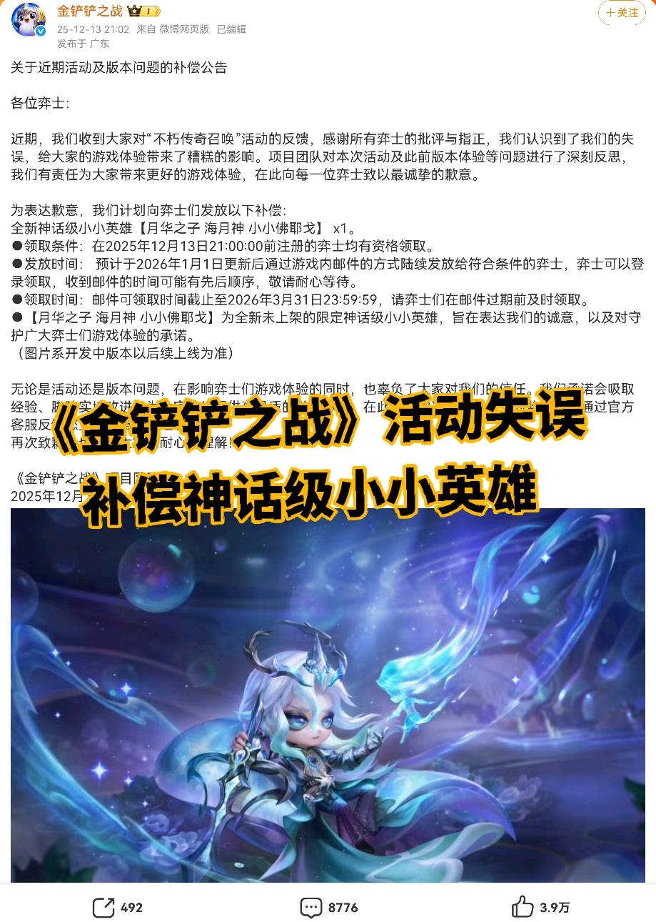 《金铲铲之战》活动失误,补偿神级英雄❤️🔥