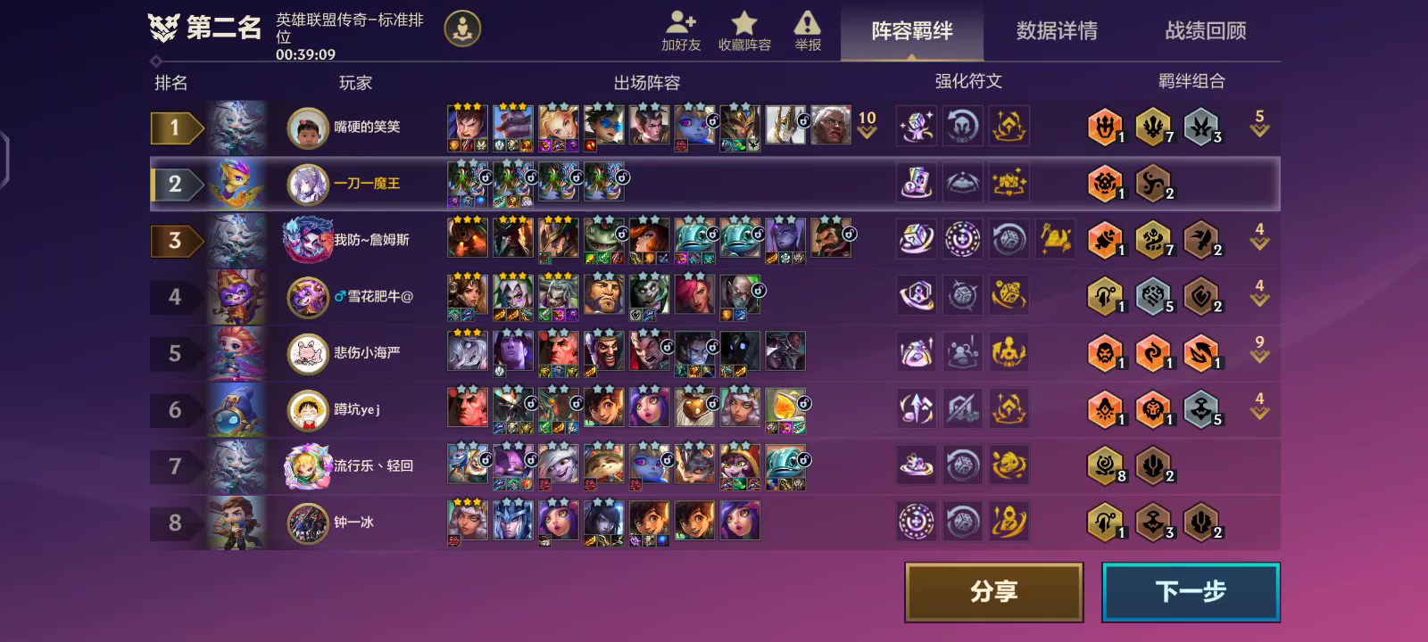 三星萨勒芬妮带我绝地翻盘进入前四,然后输给了塞拉斯加千珏,还好有最小巨人的回血,极限活了下来,不然今晚睡不着了。把其他两家淘汰后靠着奇遇给的70金币梭哈出了三星布隆。感觉这强度带上饮血法爆水银完全可以单挂。