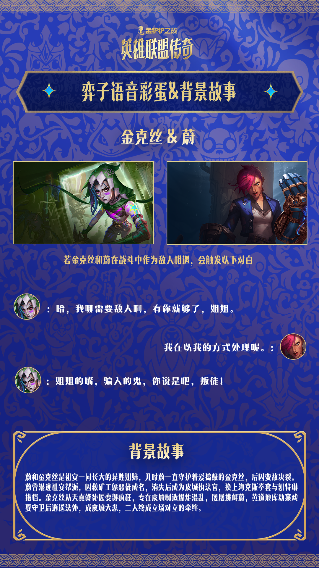 【英雄联盟传奇】赛季的弈子新解锁机制,不仅是玩法的升级,更是一场背景故事的全新串联~ 各位弈士对战时有没有发现?弈子们并肩成战友,会触发专属的暖心联动语音;可当昔日伙伴反目成敌,解锁的彩蛋台词更是充满了宿命感! 金宝儿今天继续为大家带来弈子的彩蛋背景故事大揭秘专栏! 快来看看吧! 希望今天的内容能让弈士们在下次对局时多一份不一样的感动与理解~ 如果弈士们还发现了其他有趣的弈子彩蛋,欢迎