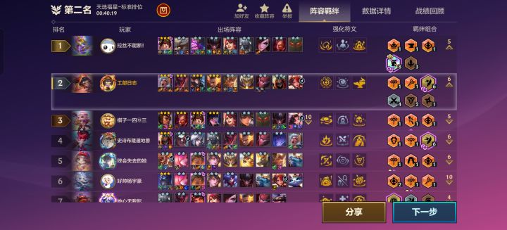答案如图 宗师不削削嘛 我是赌狗 纯连败后面猛刷出三星男刀 三星男刀至少都有三四千血吧 二星戏命师 一枪就给崩没了 而且神射这玩意 前面有两重装顶前面就可以很轻松连胜的 后面法师多在补秘术 物理伤害多能有神射来的快? 直接五宗师四神射 还可以弹后排 我之前玩过一把 三星拉夫也是同理被我二星戏命师一枪崩了 还附带的弹死几个 高分基本就 密宗射 我还是纯看没人玩男刀硬吃连败 免费刷 把男刀d到三星 想
