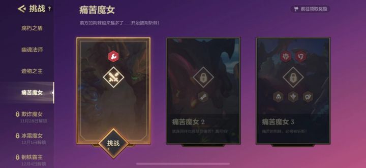 大家好我是薄暮起。在新版本“双城传说”中,暮光之战模式和我们又见面啦! 今天开放了第六关痛苦魔女,剩余的关卡每3天解锁一个。与大家熟悉的《金铲铲之战》常规模式相比,暮光模式不是与玩家进行对抗,而是闯关一样,每个关卡设定好固定的阵容和棋子星级,我们需要合成合适的装备来给我们场上拥有的棋子让我们能够赢得对抗boss的胜利即可。 暮光模式规则暮光模式中跟正常模式下那些规则不同,我们不能提升经验值