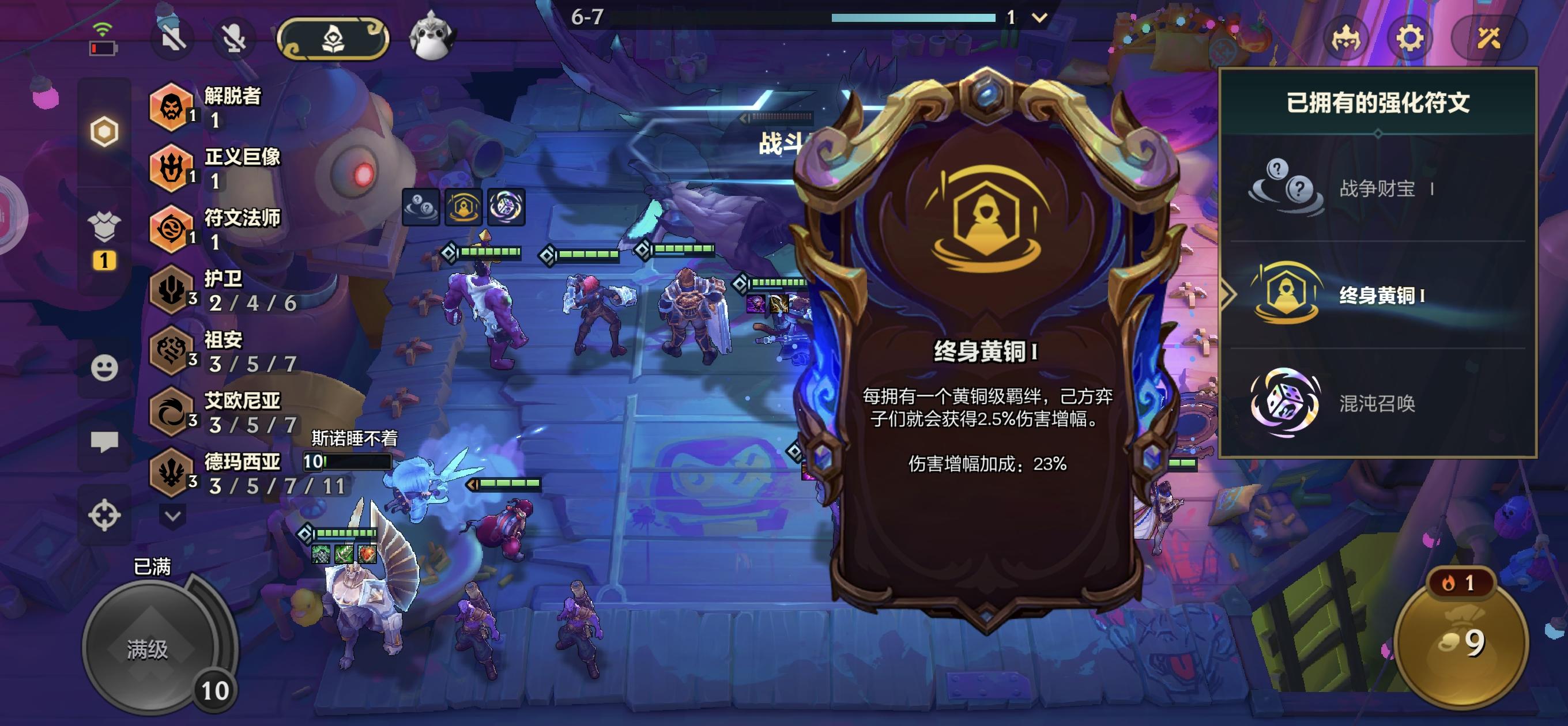 3祖安3德3艾2约2皮城+2斗2护2狙神2神盾最后只是多了一个护卫,少了一个法师究极拼好饭阵容,真的好玩,中间直接一二星的拼好饭阵容连胜上9开了瑞兹可惜最后惜败十比