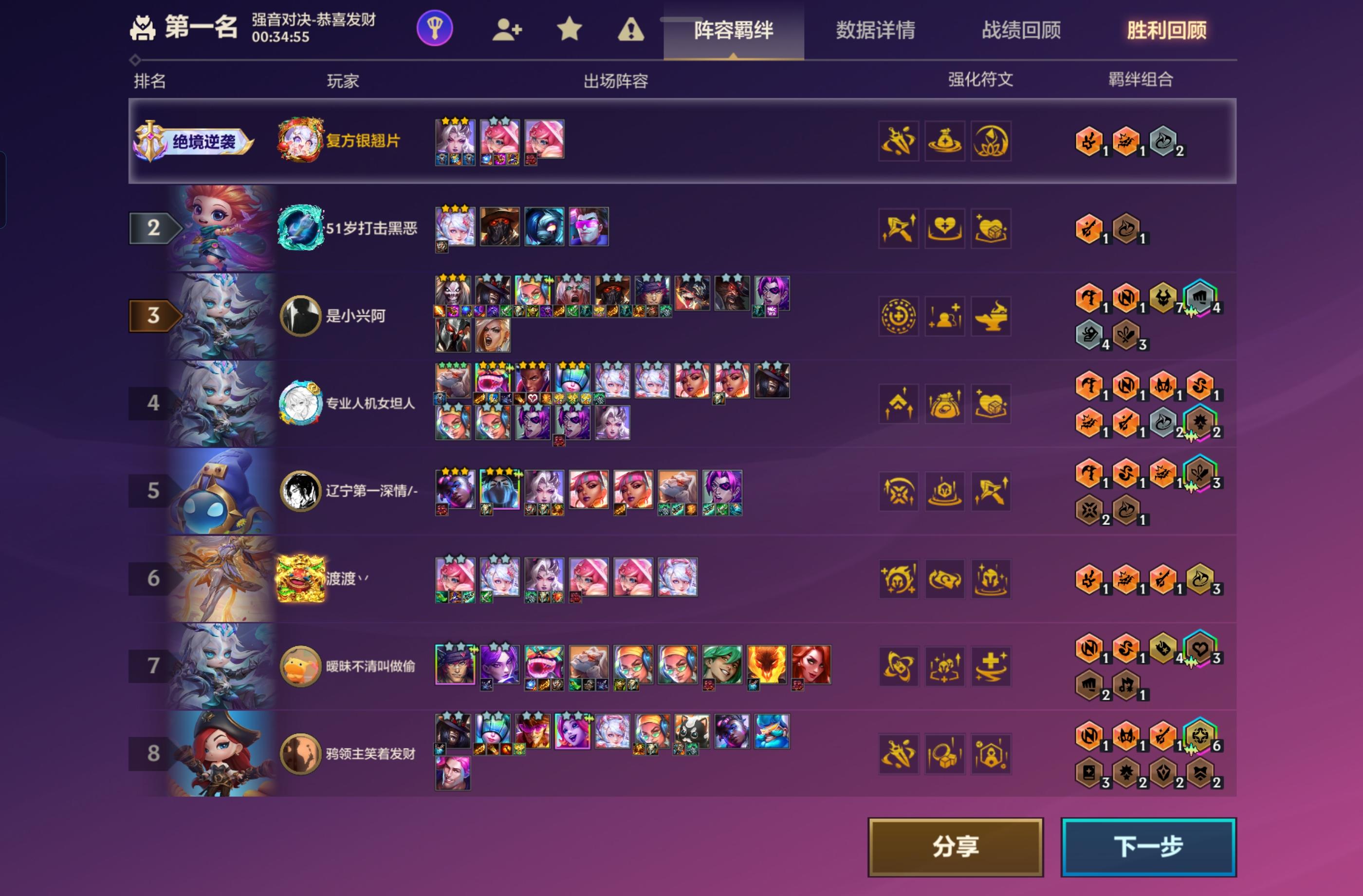 还有7个人的时候老4(老七)就开出来三冠冕了,本来都以为他要爽吃,可惜遇到兔子神力,复制了两个蜘蛛,又等胖胖龙给了个妮蔻,然后老四遗憾离场。#金铲铲之战 #三星五废翻车记录