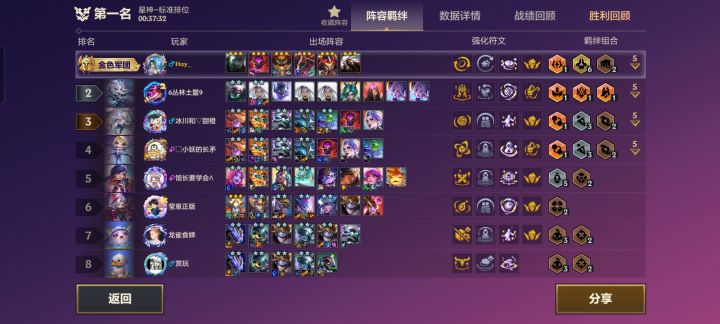 以为会和福星一样凑够条件吃鸡,费力凑齐满级和9暗星羁绊,眼睁睁看着黑洞一点点移动到棋盘中心,到启动前一秒,被对面莫甘娜秒了,这羁绊描述的太霸气,让我一时难以接受,以为稳吃鸡,结果拿个第二