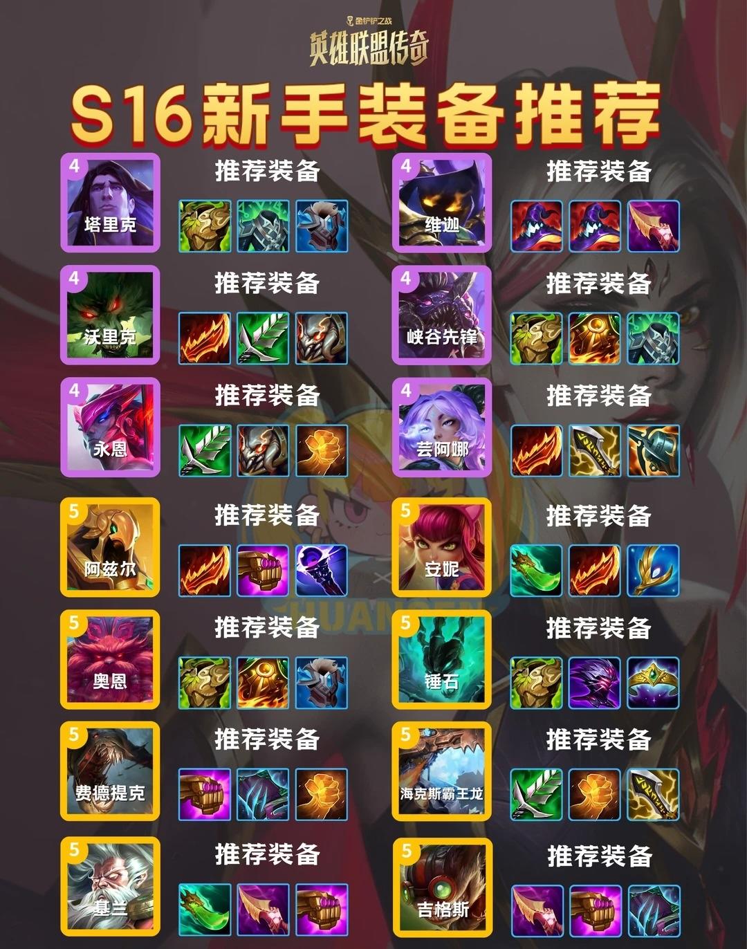 s16新增了很多的神器:暗影木偶、黎明之盾、帽子饮品、恶火小斧、还有几个暗裔类的神器内容转自:HUANSEN金铲铲攻略