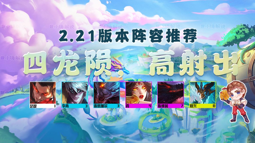 前言:大家好,我是小嗨。2.21版本也更新有2天时间了,新版本改动并不是特别大,因此对于当前版本游戏环境影响也不是特别大,今天小嗨给大家分享新版本上分思路。 本次版本最大的变数就是新加入了高射霞的体系,中期锁血强度明显优于暗星斯维因,而且比较克制没有成型的四龙体系,已经有点成为版本毒瘤的意思。其他阵容强度还是没有太大的变化。 阵容解析:四龙神体系过渡目前最佳的思路就是通过金鳞沃利贝尔,搭配上御金师