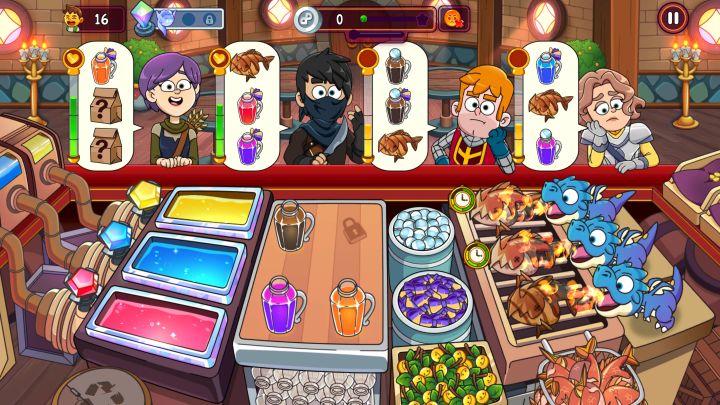 梦幻药剂2是一款非常好玩的休闲游戏。包含很多不同的商店可以游玩,可以做药水,符文,锻造武器和附魔 等等。有几十种各个稀有等级的顾客和十几种员工可以收集。此游戏没有国服,需要全程使用加速器才能正常玩。推荐用免费的biu加速。不知道怎么玩的小伙伴,仔细看第四张图的吧台桌板下方有魔法传送门,可以助你一臂之力。