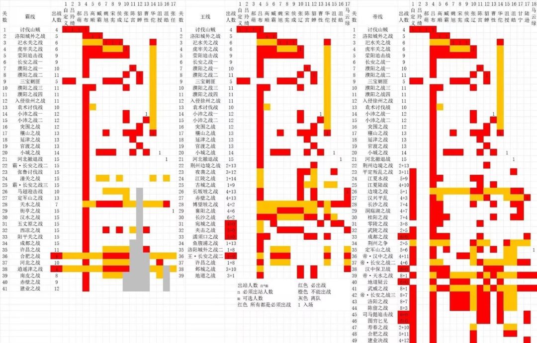 霸、王、帝线剧情出场表(无兵符版)