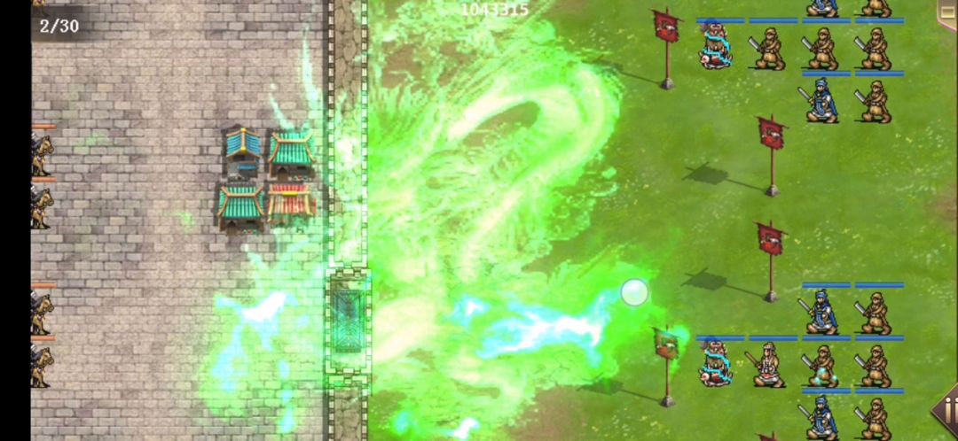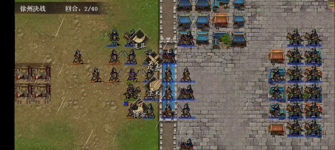 如图,到第二回合sl打死糜竺附加给臧霸的负面状态其他的都可以就是不要失明和麻痹,不然必死。 第三回合孙观可以卡进墙上去,没有加血的很难活下来,我第一次过的就是一直格挡活下来的,这次运气没那么好了,换了个思路,就让孙观苟着吧。 上面的贼兵出来回合结束不要死一个,下面的贼兵可以一两个死,不过要求尹礼能够打着他。 慢慢sl,按这站位差不多可以死那三个会复活的,慢慢打,40个回合还长着呢。 因为暂时有事中