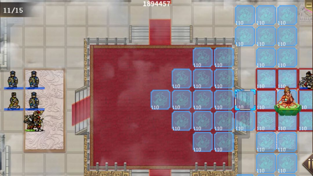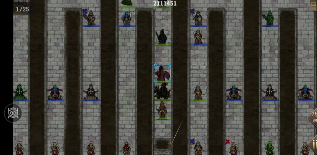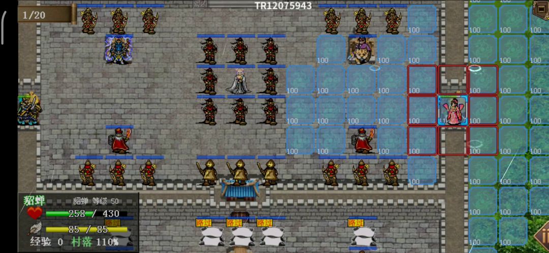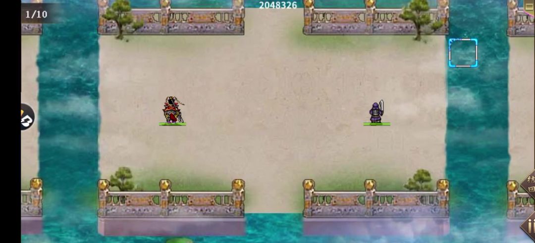 具体解释看之前的视频,智力不需要那么高,我点错属性了,所以没办法拿3145分录屏,将就着看吧。 这里优化一下站位,可以少一回合,同时也不会被项羽攻击到,虞姬也不会回血(打起来更快更轻松)。 吕布每回合站位顺序(11,14)(16,16)(23,16)(26,16) 第四回合虞姬站位(17,5)项羽站位(17,4),第五回合项羽去(17,6)游戏结束 优点:属性能打第二轮骑兵接近半血就能5回合过,能