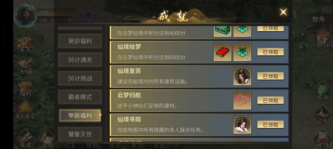 1,玩法 a,巧艺登峰成就:开局尽量刷木头石头,吕布去找(6,4)木材管事和(18,4)石材管事升级工厂(哪个工厂需要升级5次,每次需要交材料300,600,1200,3000,6000,一共11100) b,猎潮疾狩成就:难度到达一定程度就可以去(18,17) 找任务村民,接任务, 任务一两只老虎(1,32)附近 任务二海兽(19,34)附近 任务三白虎(31,34)附近 做完任务吕布要回去找任