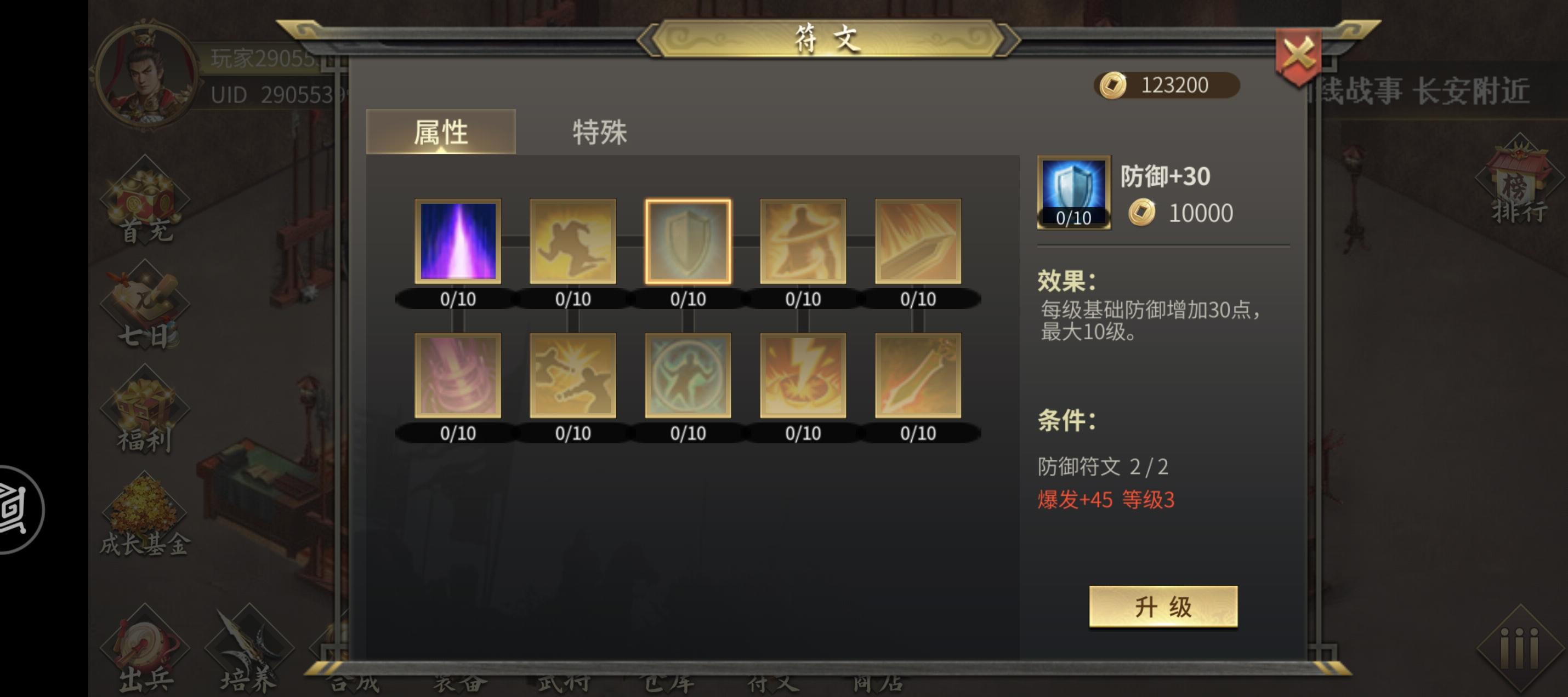 由于吕布只有装备可以带入关卡,因此资源优先点出符文来,出站位推荐小沮(隐藏关第七关可以出场)首先说一下配装,建议搭配神威套,后面小怪有真伤,因此借用神威套的先制攻击,可以保证血量健康,同时狮子盔的加速也可以有效帮助我们尽快走到百姓身边。接下来说一下思路,想通关普通结局的话难度不大,前两关没有伏兵,可以和百姓对话刷一刷加攻击的特技(最好有,不是必须)。从第三关开始,每个村民周围会有四个伏兵,因此