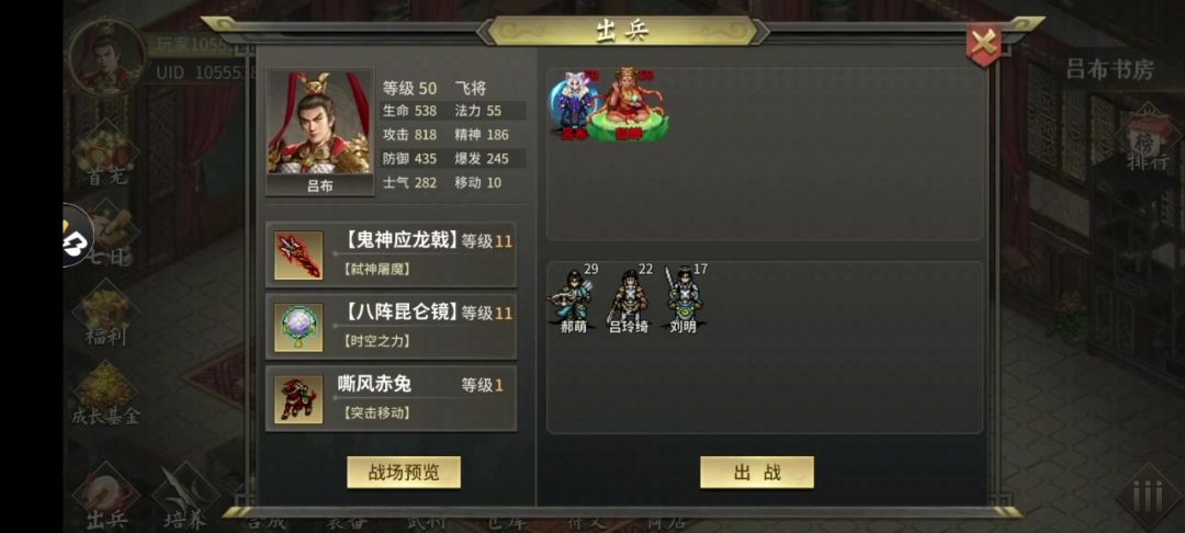需要一个极速+1(福利关可得),没有的话可以无尽1000蚩尤甲给貂蝉,或者用四阶的卢跟夸父鞋合成也可以,吕布武器跟昆仑镜演武可得#三国志吕布传 #游戏日常