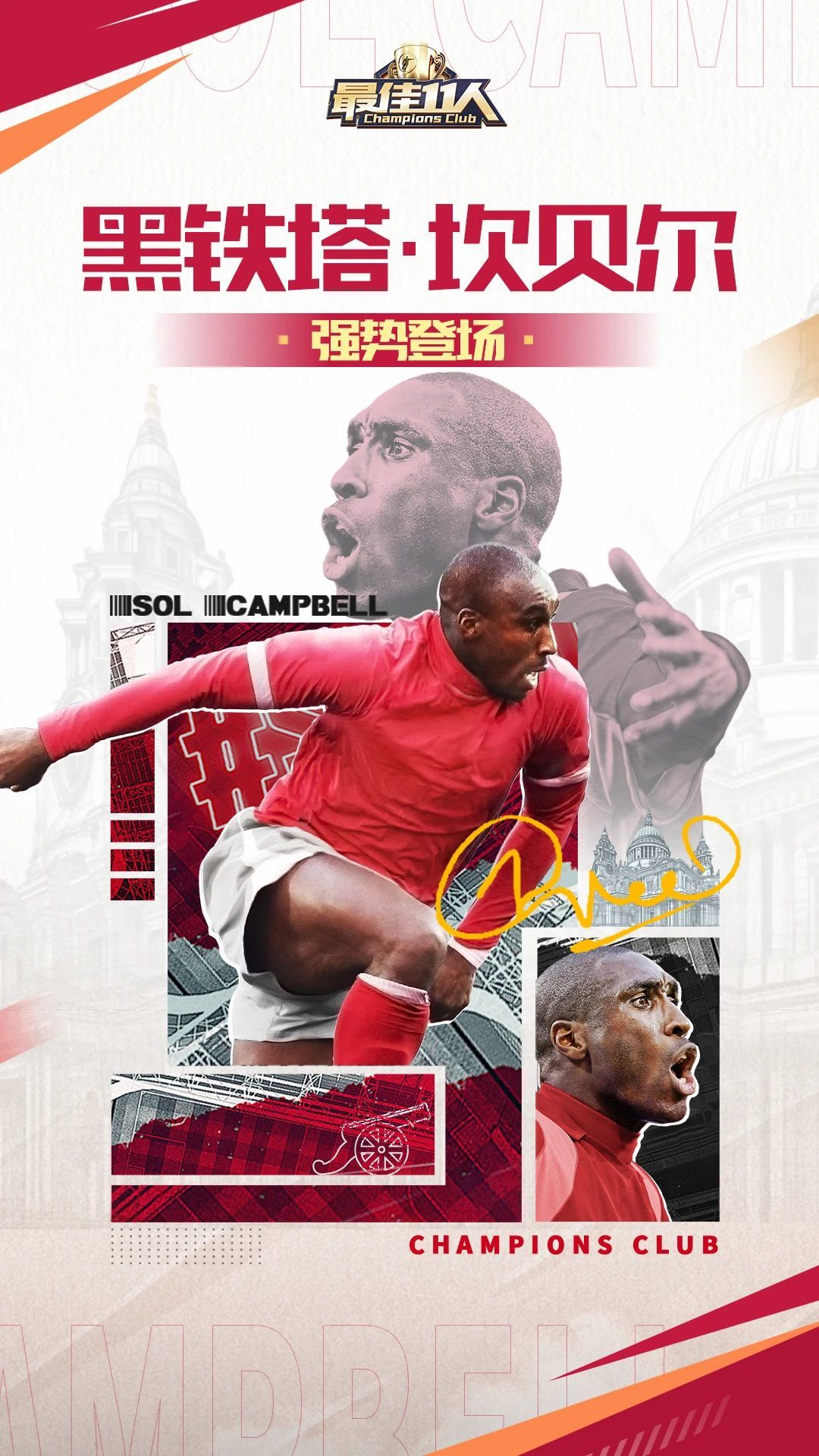 他是英格兰防线上的黑珍珠“黑铁塔”的美名 足以证明他的价值 他是枪手不败赛季的功臣他是与雷神同名的硬汉索尔·坎贝尔 今天,我们正式宣布:《最佳11人》正式签约英格兰巨星:坎贝尔官方正版授权内容即将正式上线 正值中秋国庆双节坎贝尔将在《最佳11人》的足球世界中 与各位经理人们共度佳节主题活动也将同步上线 这次的【欢度国庆主题活动】我们为大家准备了17大惊喜活动 一、节日签到 活动时间:9月27日