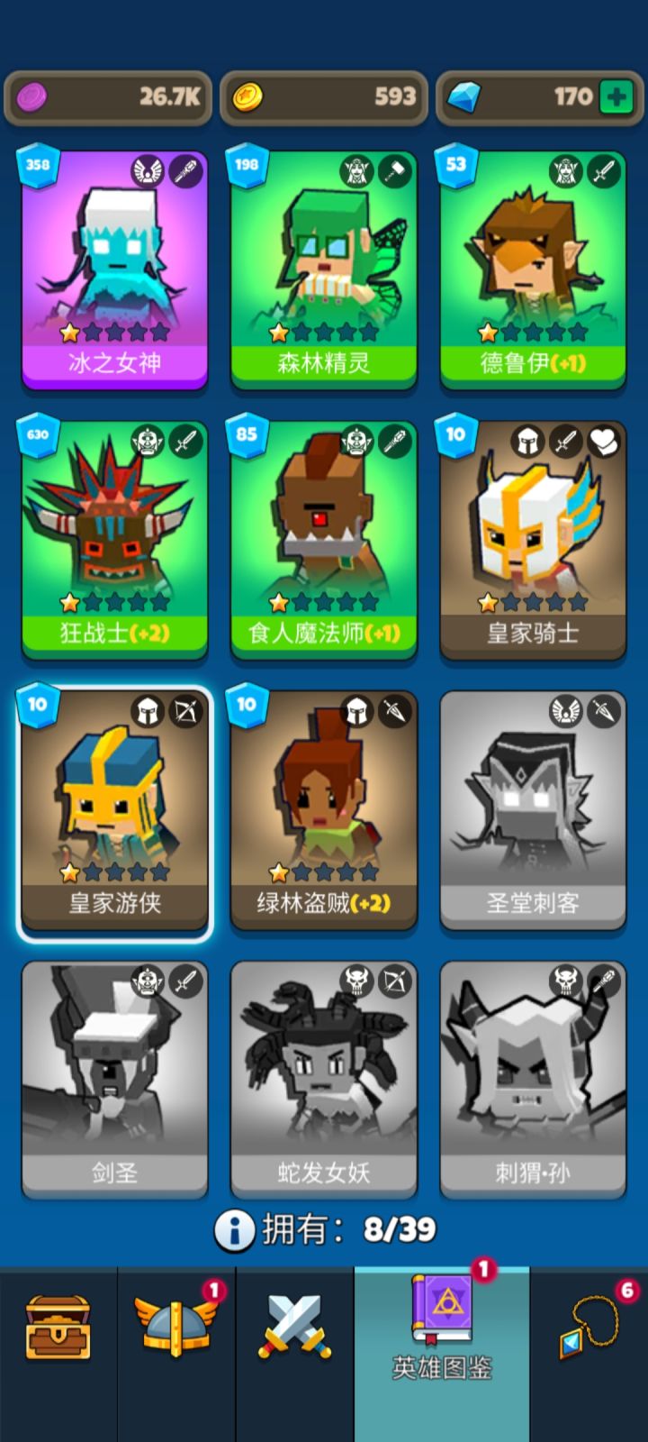 3.有了钻石不要开100的宝箱,很坑,我开了好多次都不出英雄,建议直接开1000的,据说有保底。