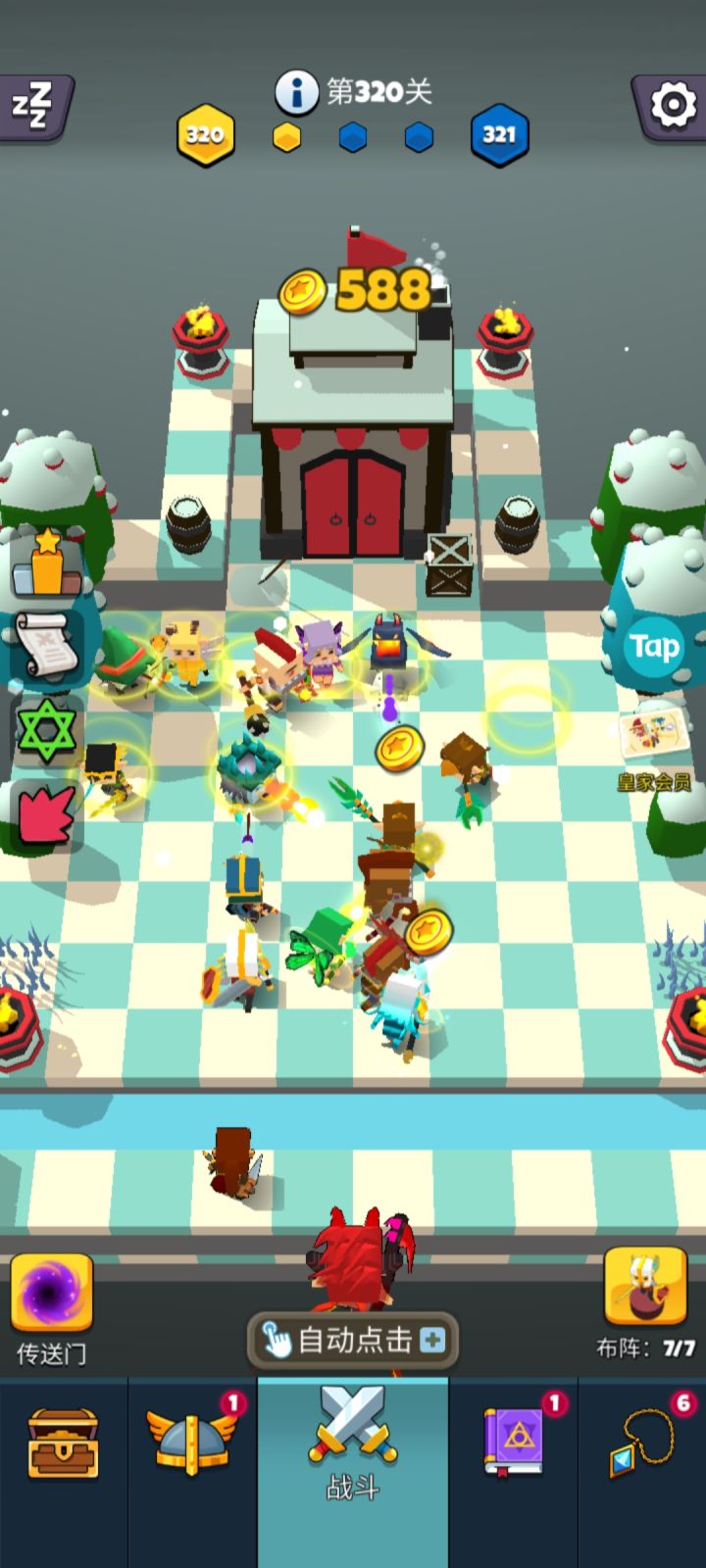 2.紫色的币,升级神器的,千万不要乱用,你会开出一个加上场人数的神器,前期都得用来先升级他。