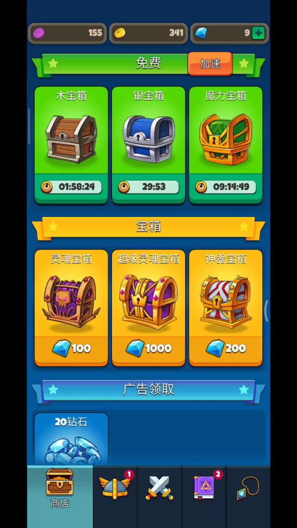 前期攻略,新手必看: 1. 刷开局: 刷出蛇发女妖(恶魔/射手)开局是最好,其次是狂战士(兽人/战士),狂战士开局仅次于蛇发女妖,(虽然狂战士是绿色品质的,但是必养), 刷开局方法是,进入游戏打过20层的龙,成就会给个100钻石品质的宝箱,战斗页面也会给一个龙宝箱,记得看视频,看视频的龙宝箱才是100钻石买的高品质宝箱,不看就是低品质木宝箱, 开完这两个宝箱之后,领完任务的钻石,刚好有到40的钻石