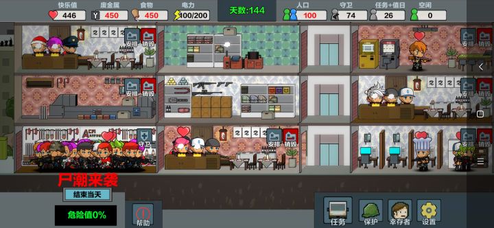 这游戏让我想起来很久之前玩的一款,就是给一个全是丧尸的城市,玩家需要分配招慕来的幸存者,不断解锁周围建筑,有丧尸来会提前显示在哪个方位还有几天,幸存者有农民建筑工之类的职业,还可以给所有人升级能力,招人需要领导力高,而且解锁到后期会有敌对势力,可以选择去下一个城市或者把这个城市全部解锁完,很久之前玩过的了,突然想起来,不知道有没有人记得叫啥民,想重新玩了。