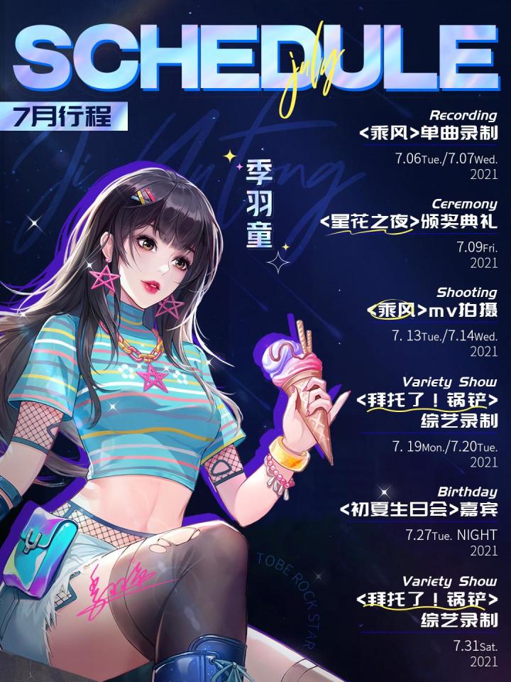 艺人行程|季羽童七月行程公开