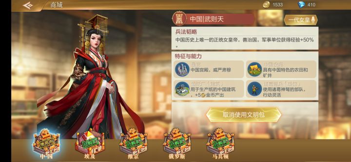 最重要的:官方群号是340448019(qq群)埃及攻略:特殊建筑:方尖碑(+5金币产出)这个建筑可以让你在中期多建分城时拥有稳定的金币收入,可以大量建造兵,屯兵(维护费用够了),后期打架,也可以建造大量工人。特殊建筑:圆农田(可以在沙漠中建造,+2粮食)此建筑比本来的农田多+1格粮食产出,而且是在沙漠中建造的,可以让你出生在沙漠是变的有优势,而不是劣势。中期:其实到了中古时代就可以了,把