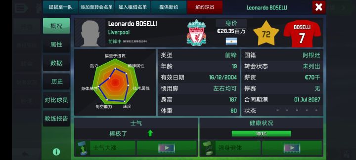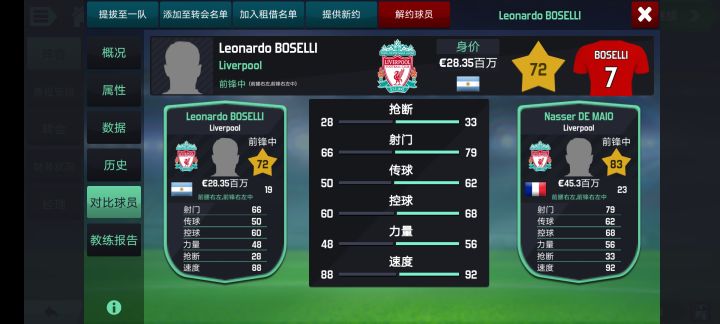 我队里两个转生C罗,法国这个是还没退役的时候出的,阿根廷这个是退役之后出的。我发现20这个网上下的版本球星在33岁的时候会出转生,起始21岁,工资相对便宜一半,训练涨幅比起球星退役之后的转生相对慢一些。