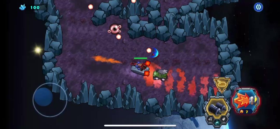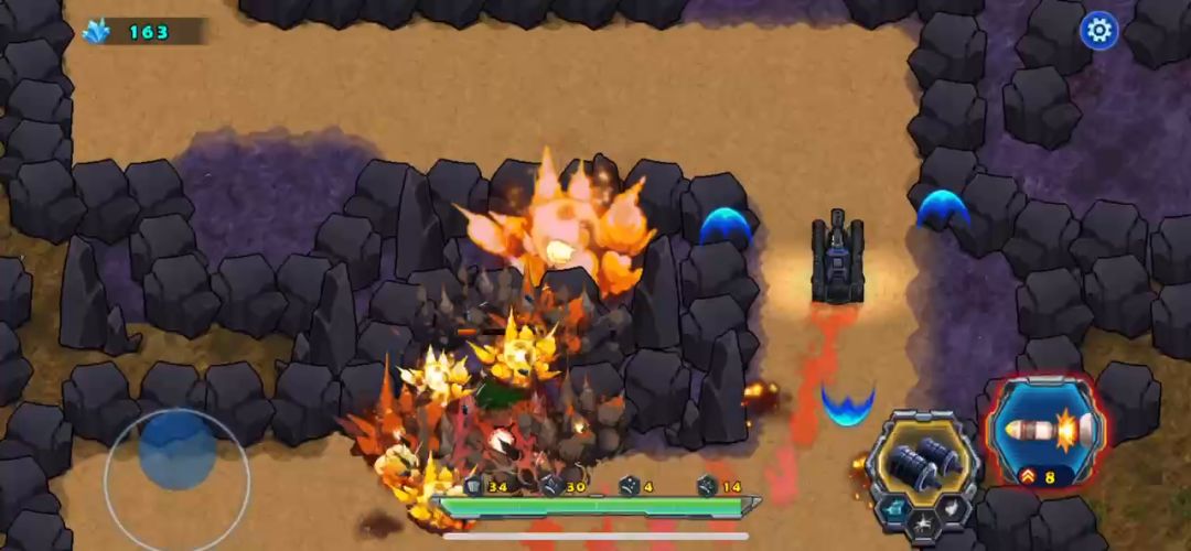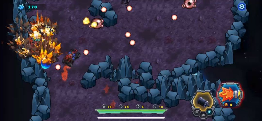 现在战车的血量词条特别小,战斗中要时刻注意血量变化,喷火枪是近战威力很大的一款枪,满级30级基础攻击980,射速0.15。攻击杀敌主将BOSS相当给力,用30级的喷火枪打魔眼第一局,这局要先解决掉就近的几个小魔眼不要让它们影响我们战车的躲闪,小魔眼被摧毁后,受到的威胁就大幅减少了,直接去地图中间打BOSS,上面的魔眼就不用打了,击败它就直接通关,新玩家尽快解锁吧。
