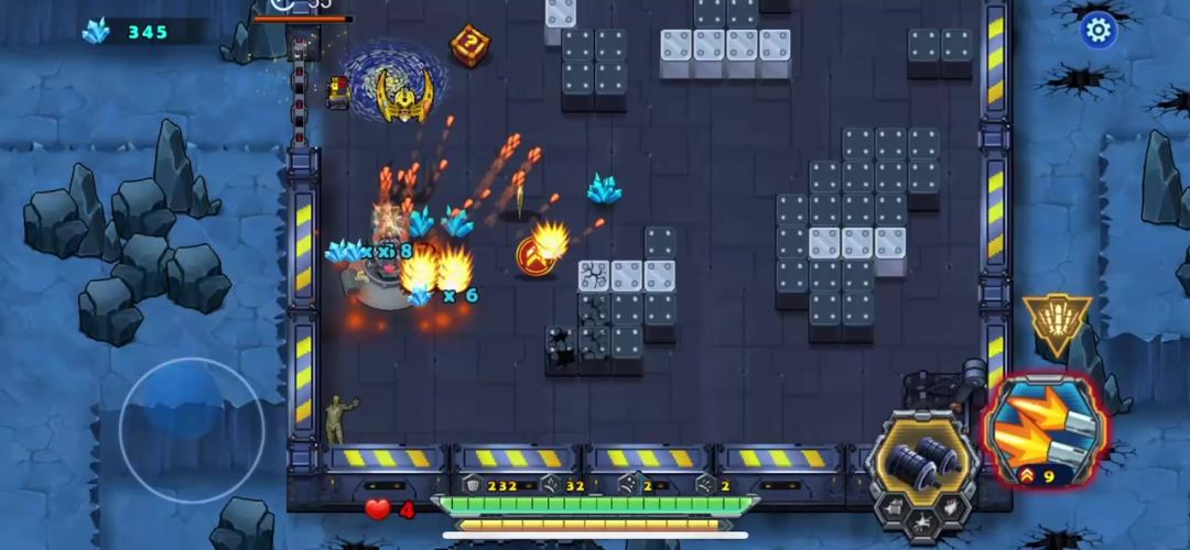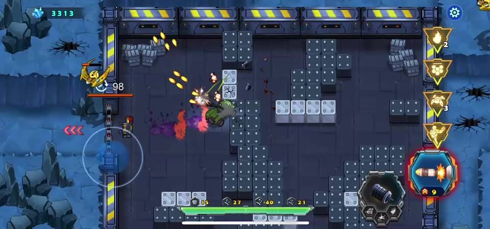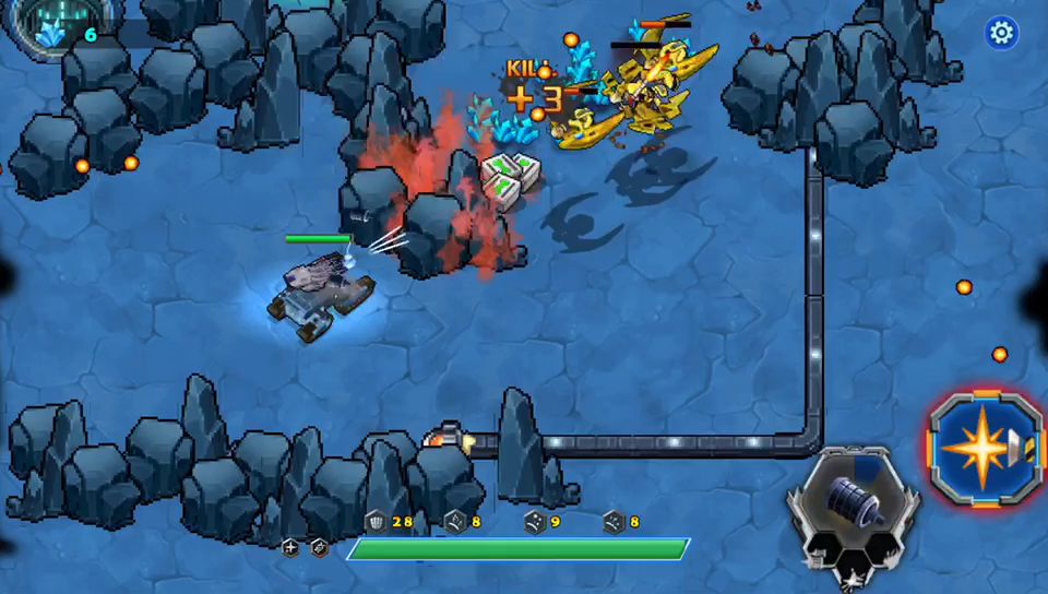 游戏开始战车就被封闭在一间库房里,出不去,需要你的宠物来打破拦截战车的大门才可以通过,战车这时候要快点把周围的方块都炸掉,里面有不不少的物资辅助战车通关,加血的都留下,掉血的时候再用,把增加战车攻击的都吃掉,敌人这局全是飞行器,巧妙的躲避敌子弹是过关的关键,战术卡能留就留着,打完巨型飞创直接进入下一关可以带过去,要是退出在进下一关你的战术卡就没有了,此关卡不难,请参考视频!