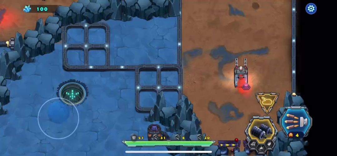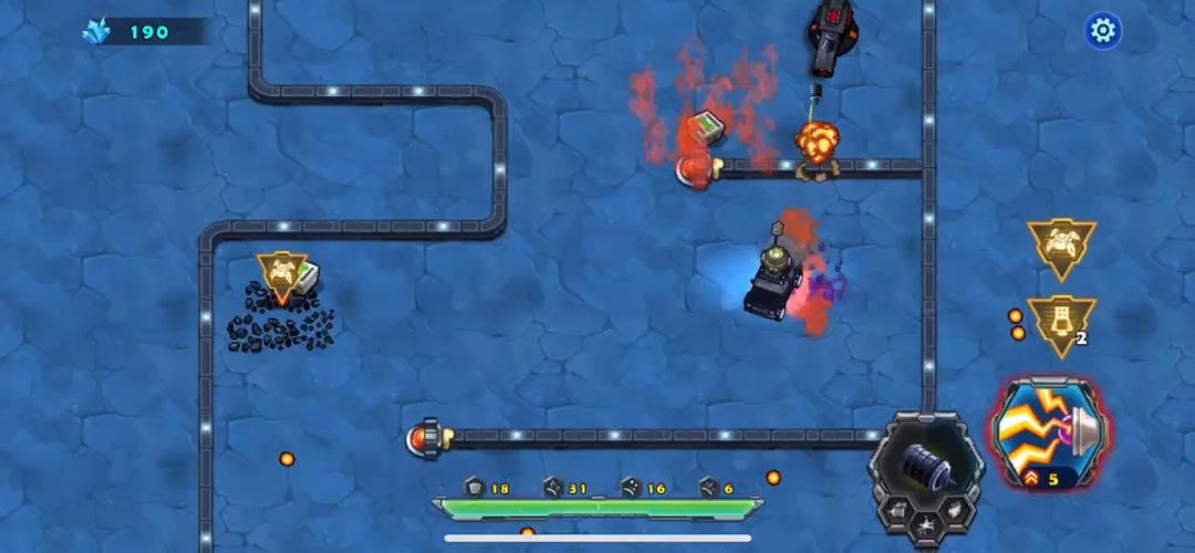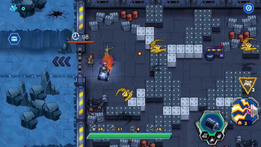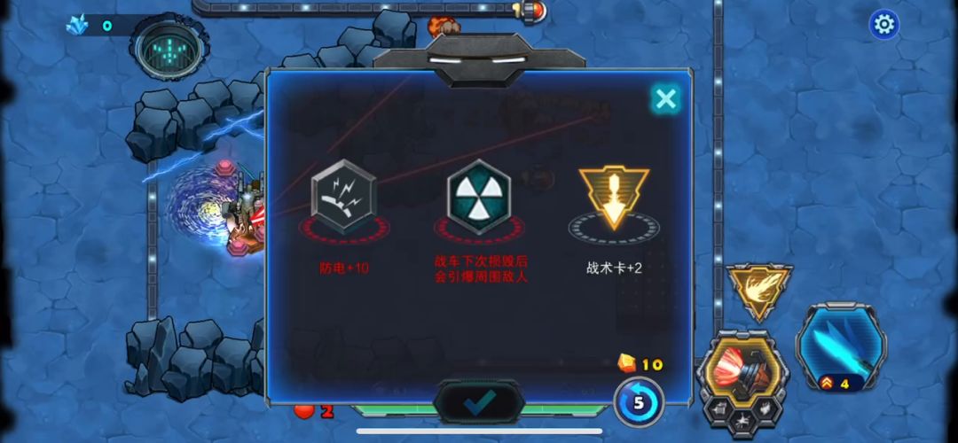 进入第二章母舰,来到了第一关,游戏开始战车就被封闭在一间库房里,出不去,需要你的宠物来打破拦截战车的大门才可以通过,战车这时候要快点把周围的方块都炸掉,里面有不不少的物资辅助战车通关,加血的都留下,掉血的时候再用,把增加战车攻击的都吃掉,敌人这局全是飞行器,巧妙的躲避敌子弹是过关的关键,战术卡能留就留着,打完直接进入下一关可以带过去,要是退出在进下一关你的战术卡就没有了,此关卡不难,请参考视频!