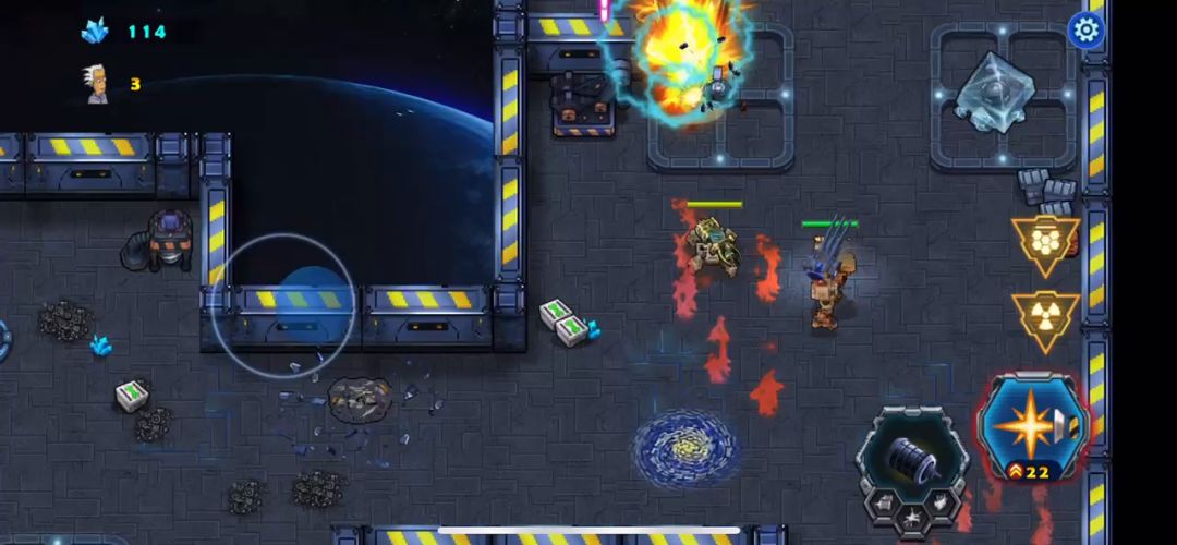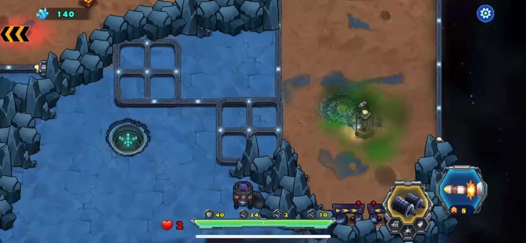 新手玩家要想在地图中痛快杀敌就要多练等级和升级枪塔,第一关冲出仓库后,我们来到了母舰的第二关,先把你的双雷开发出来再打,进入游戏要隔着栏杆炸毁敌人的巨炮,空中的飞行器是由敌人的飞行平台出来的,釜底抽薪的要先毁掉敌飞行平台,关卡处有大炮平台,只要你的火力强大就不是事了,轻松就能搞定顺利进军下一关!