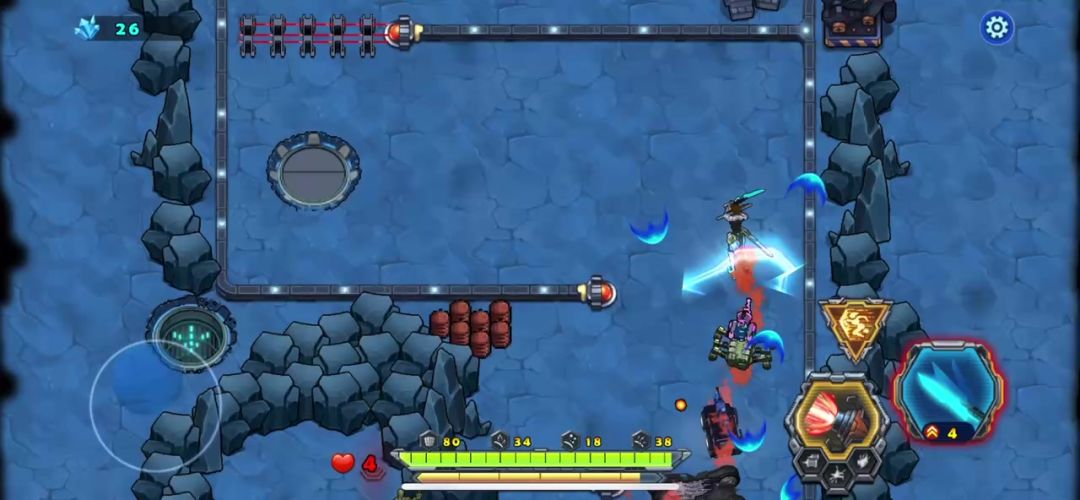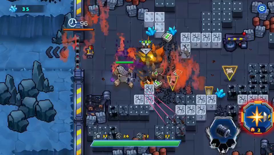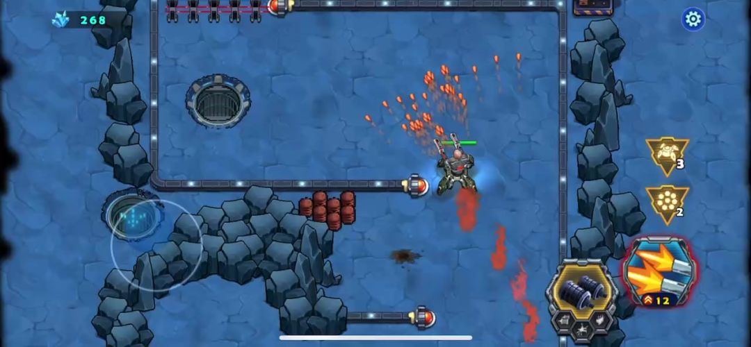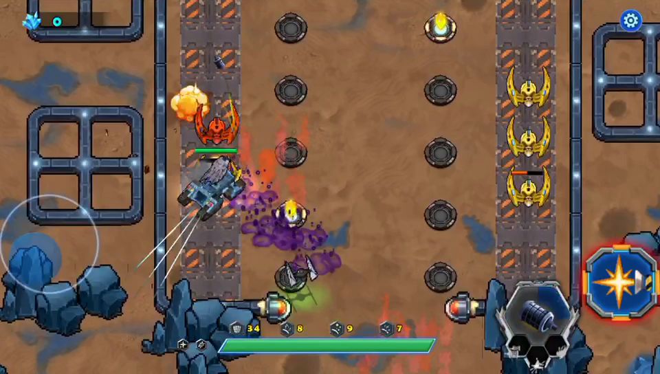 这一关被封闭在一个区域内打,出口被敌人封锁了,需要借助霹雳7号攻破大门才能通关,这段时间内,敌人会有大量的战斗机攻击我们战车,我们要做的就是防守,不能让敌人在这段时间内摧毁我们的战车,大量的石块里面有加血,打出来不会消失,等掉血的时候回血用,没等到霹雳宠物打破大门,敌人的BOSS就出来了。狭路相逢勇者胜击败它我们就可以通关了,