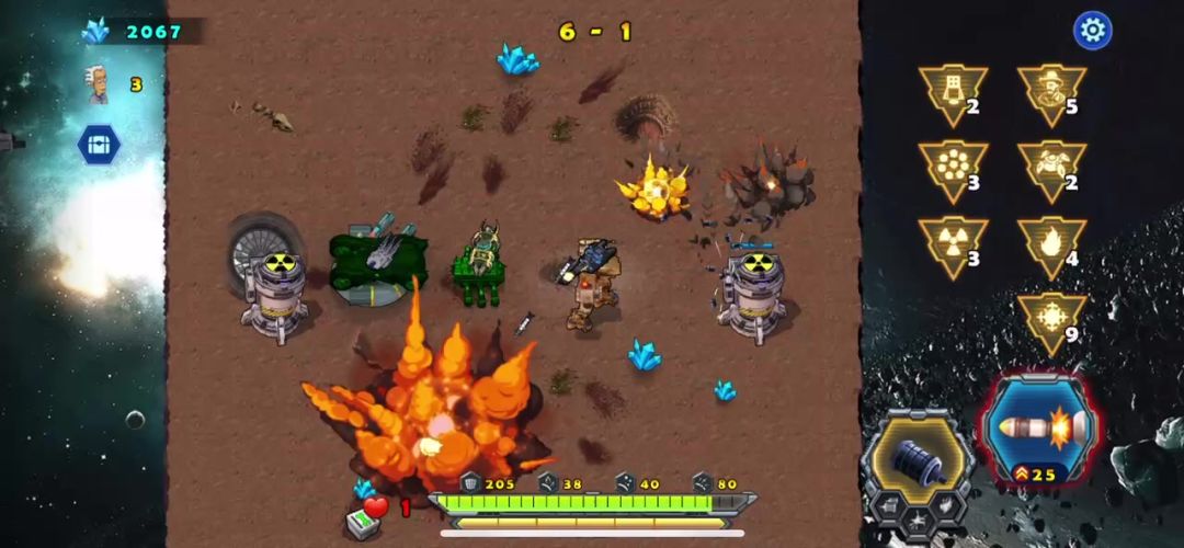 战车来到了异星空中堡垒的第三关,这关在剧情里面感觉难度不大,后面的难度剧情应该不好打的,因为这局的敌人多兵种,挺复杂的,这关地图不大,但是四个出口不断的同时出兵挺快的,疲于应付,一共6波次的敌人,还有驻守的BOSS,波次里面的激光飞碟掉血挺狠的,一定要小心应付,最后的BOSS挺像我们的宠物的,攻击高,需要有格挡物来保护战车,利用投弹击杀它。视频请参考