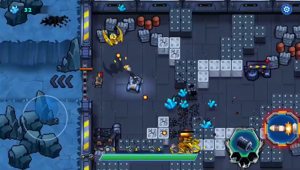这局开局战车先把右边的石块捡取后往下跑,碰到激光射线用石头堵住,射线有石块阻挡后战车可以安全通过,小飞碟不用太在意打,又不是无损通关,干掉敌飞碟后,右边还能拾取石块。按视频阻挡住前面机关发射的成排的子弹,就可以安全通过迎战大飞碟了,携带的战车合击打掉它就可以通关。请参考视频