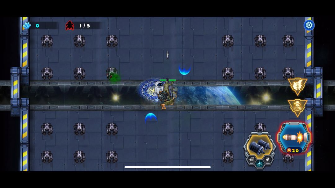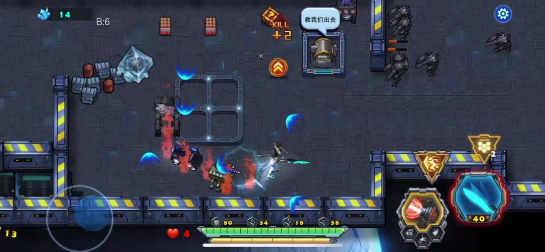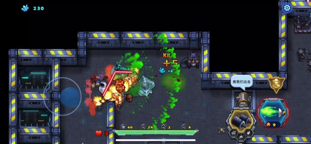 开局后天使战车不要畏缩不前,只有敢于冲杀才能胜利,利用瞬步斩无敌的技能斩杀敌人的圆球小分队,并且解救出被困的工程师后北上击败巨人,同样也需要瞬步斩的配合才能在不掉血的情况下击败它,剩下的就是要巧妙的打敌人的供电系统破坏掉,不然是通不了关的,敌机关发射的射线掉血很厉害,不要硬闯,打爆供电系统射线就没有了,兔耳怪要隔这墙体打它,它攻击不到我们战车,这关的BOSS有点凶,射出的光线密集,要利用我们获得的
