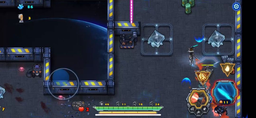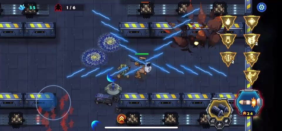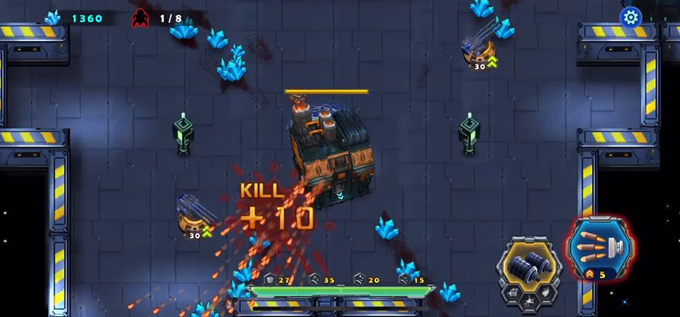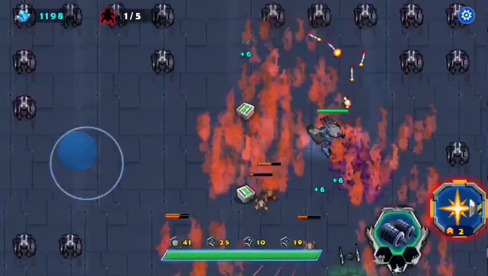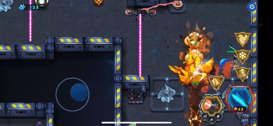 近战天使战斗中要多加注意自己的血量。开局后天使战车不要畏缩不前,只有敢于冲杀才能胜利,利用瞬步斩无敌的技能斩杀敌人的圆球小分队,并且解救出被困的工程师后北上击败巨人,同样也需要瞬步斩的配合才能在不掉血的情况下击败它,剩下的就是要巧妙的打敌人的供电系统破坏掉,不然是通不了关的,敌机关发射的射线掉血很厉害,不要硬闯,打爆供电系统射线就没有了,兔耳怪要隔这墙体打它,它攻击不到我们战车,我直接不打越过了、