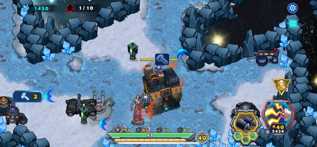 四个关卡的这一章除了第一关是防守关外其它都是进攻局,第一关设置塔防很重要,塔防的增多会大大减轻战车的压力,坚守轮次结束敌敌Boss就出现,巧打双影人就通关,其它三关难度很大,里面机关重重战车要有节奏的进攻,战斗中尽量多存战术卡留到最后的Boss使用,大boss形状如盘不断转圈发射子弹攻击战车,速战速决更加省力省时。