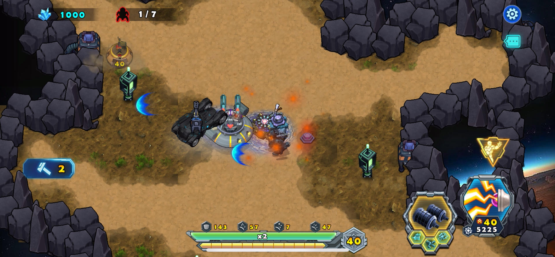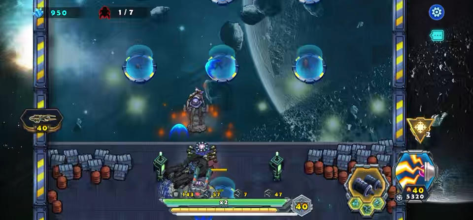 进入游戏会看到守护的不是采矿基地是一个绿植,是不是似曾相识,没错就是机器人总动员的绿植。推荐主战车用雷神之锤,敌人7轮进攻很猛烈,系统会赠送协助的枪塔给什么就用什么,灯塔下布设好枪塔升级就行,把枪塔全部升级到最高,这局水晶用不完。战车不时的去拾取资源。敌七轮敌人BOSS出现,有实力的可以提前去等待它,实力弱的可以在布设的我枪塔出待机配合枪塔干掉他,主要绿植不能被伤害到就可以了。